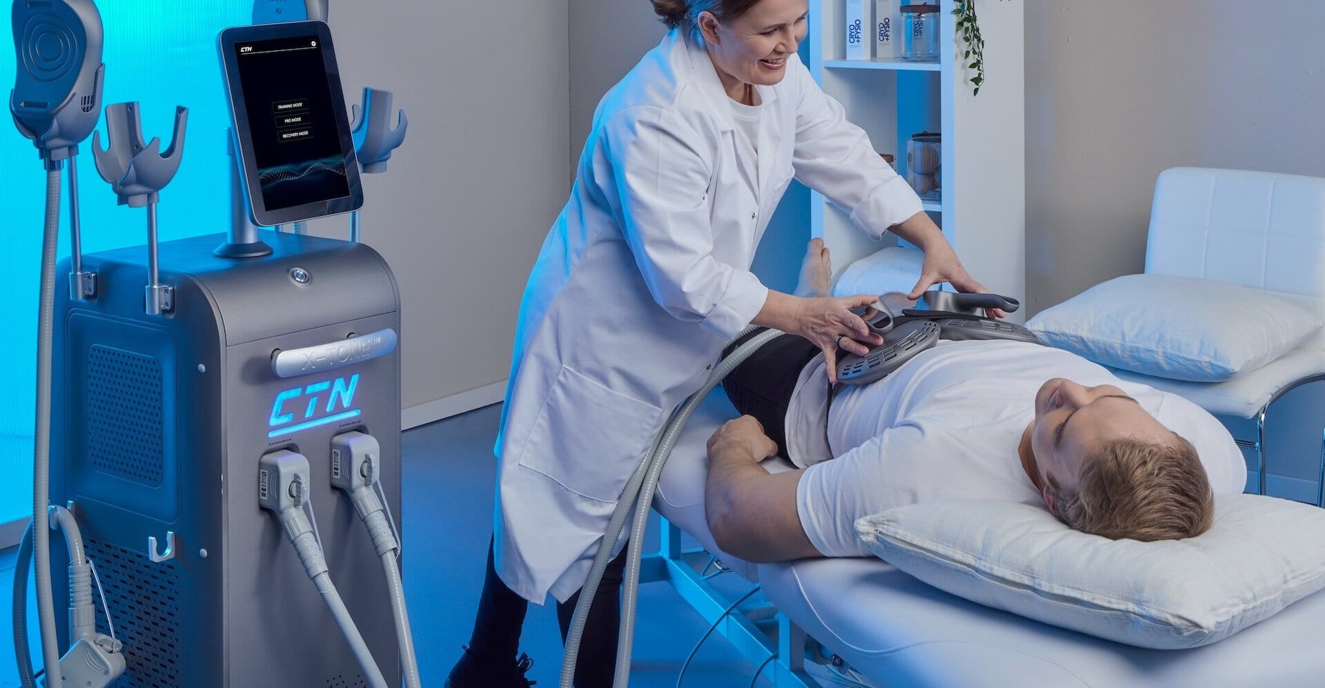 - Kích thích cơ từ tính (MMS), được hiện thực hóa bằng thiết bị X-TONE™, sức mạnh của năng lượng điện từ được khai thác để kích thích sự co cơ. Công nghệ tiên tiến này tạo ra các trường điện từ tập trung có cường độ cao, thâm nhập sâu vào các mô cơ. Khi cơ có sự tiếp xúc với năng lượng này, cơ sẽ phản ứng bằng các cơn co thắt nhanh và mạnh, vượt xa những gì có thể đạt được thông qua các phương pháp tập luyện khác.